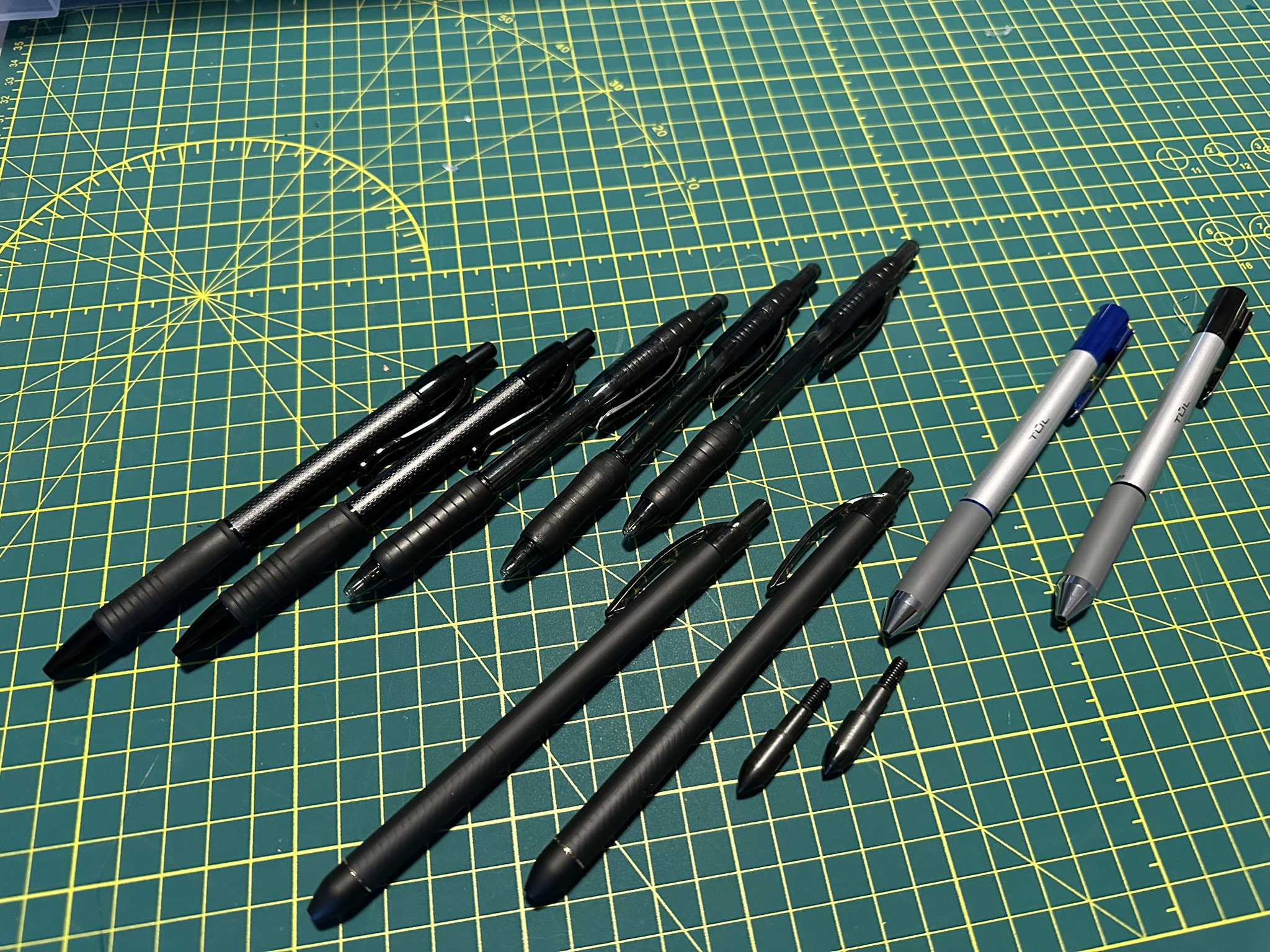 - Disassemble the TUL Ballpoint Retractable pens removing the front tip, metal ring, ink-tube, and set aside the Grips.