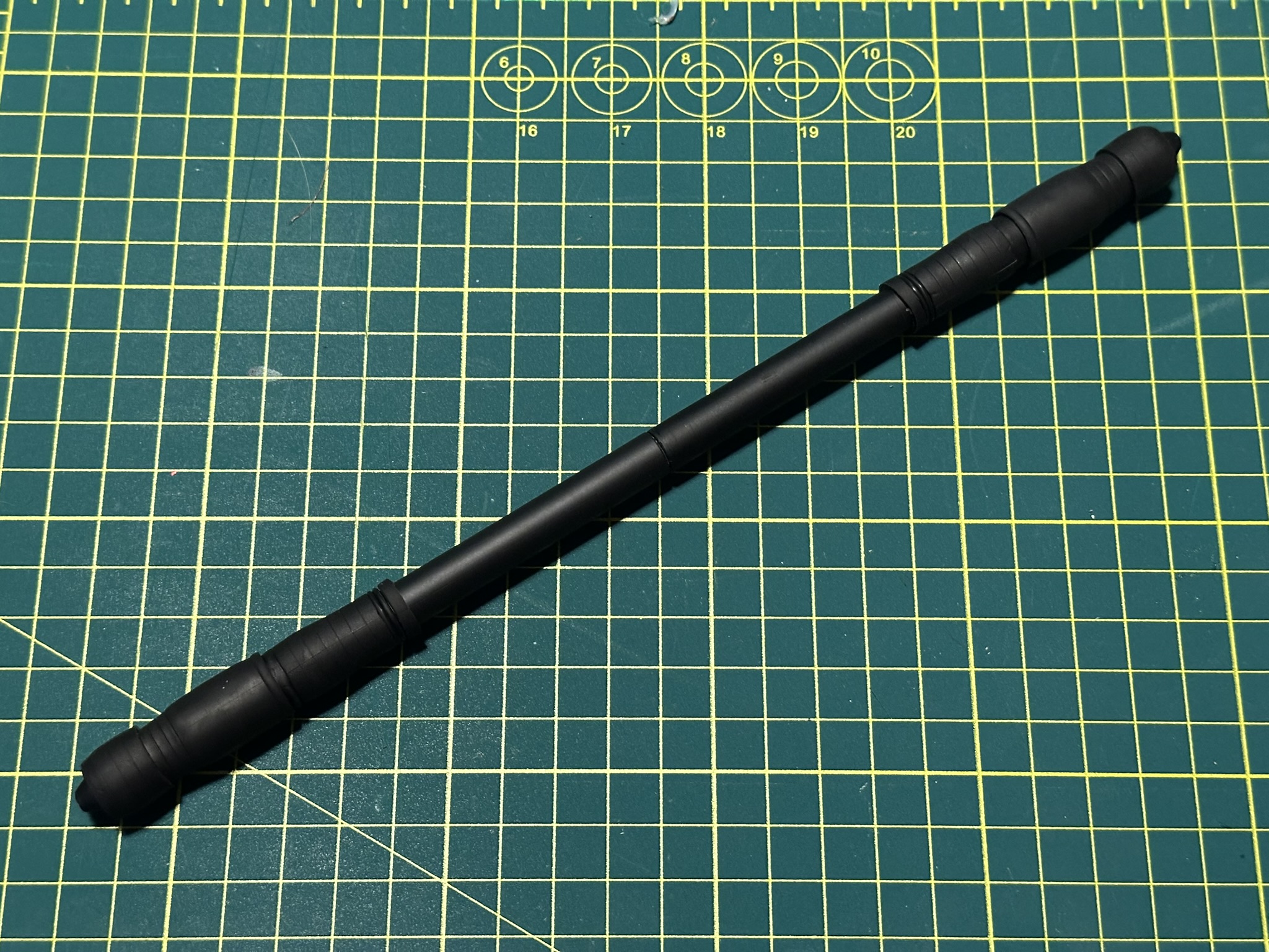 The Dark Mod Zero is a personal mod made by spinner Orctupus YouTube. It features a soft-gripped body similar to the Papermate Flexgrip Ultra that has the ability to grip the hand but still slip efficiently. This balance leads to a unique spinning experience with spinners who want a bit more control compared to traditional plastic lacquers found on most pens and markers.