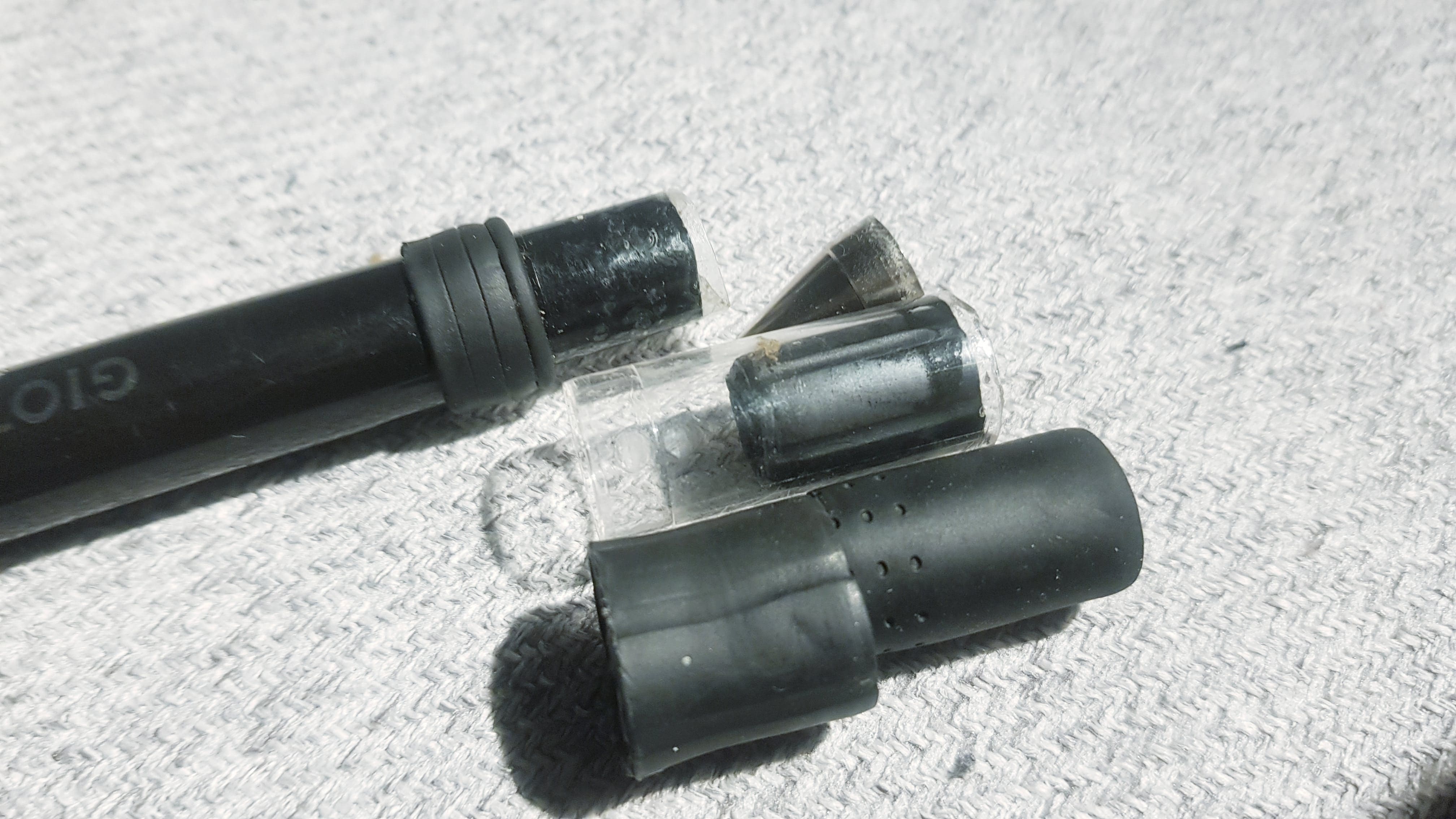 - Put 3 blocks of Anyball on the Giotto body, then add an O-ring at the front of the giotto (the closest to the body).