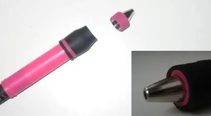 - Put the Colorgel tip onto the Milan cap, then cover it with a flat part of Supergrip grip.