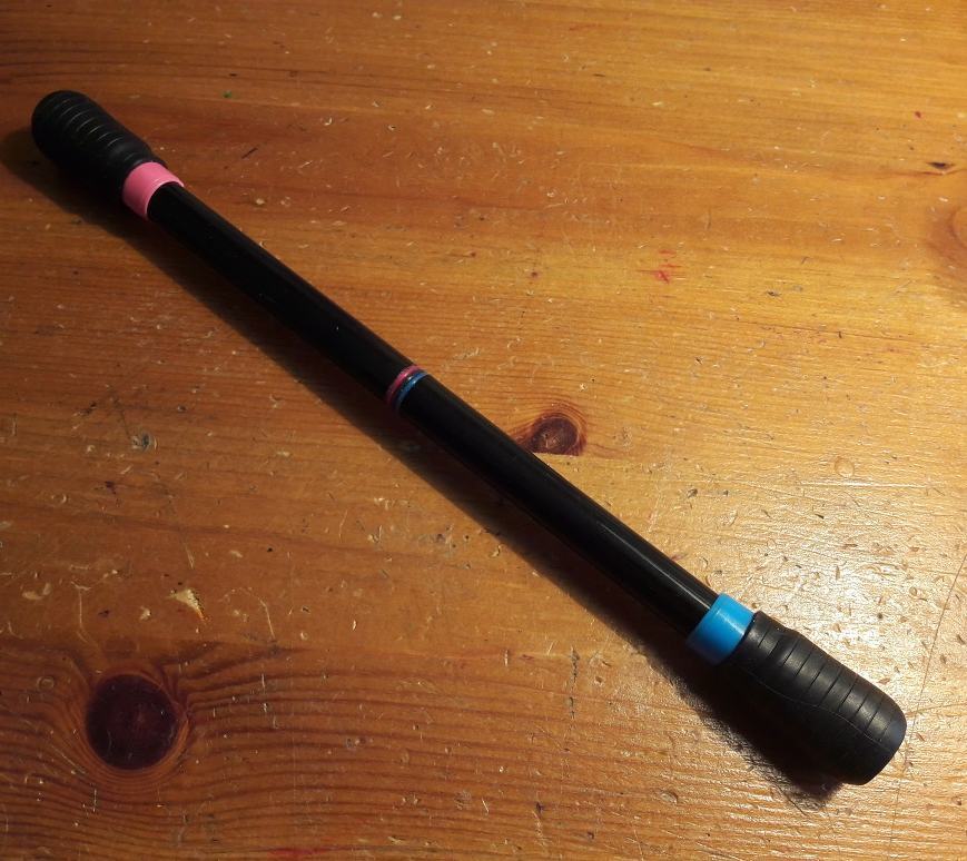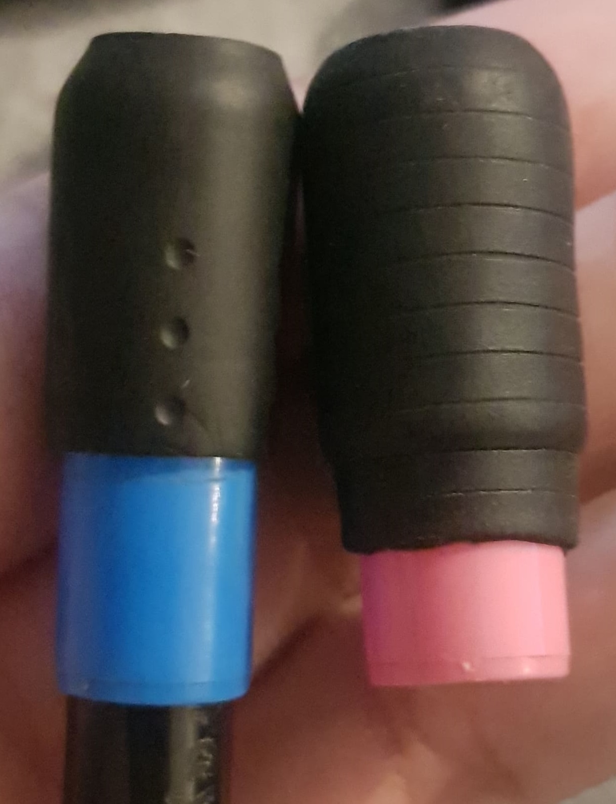 - Overgrip the Opt grips with whole Anyball grips, the side without the small ring should have ~2 stripes on the Edding body.
