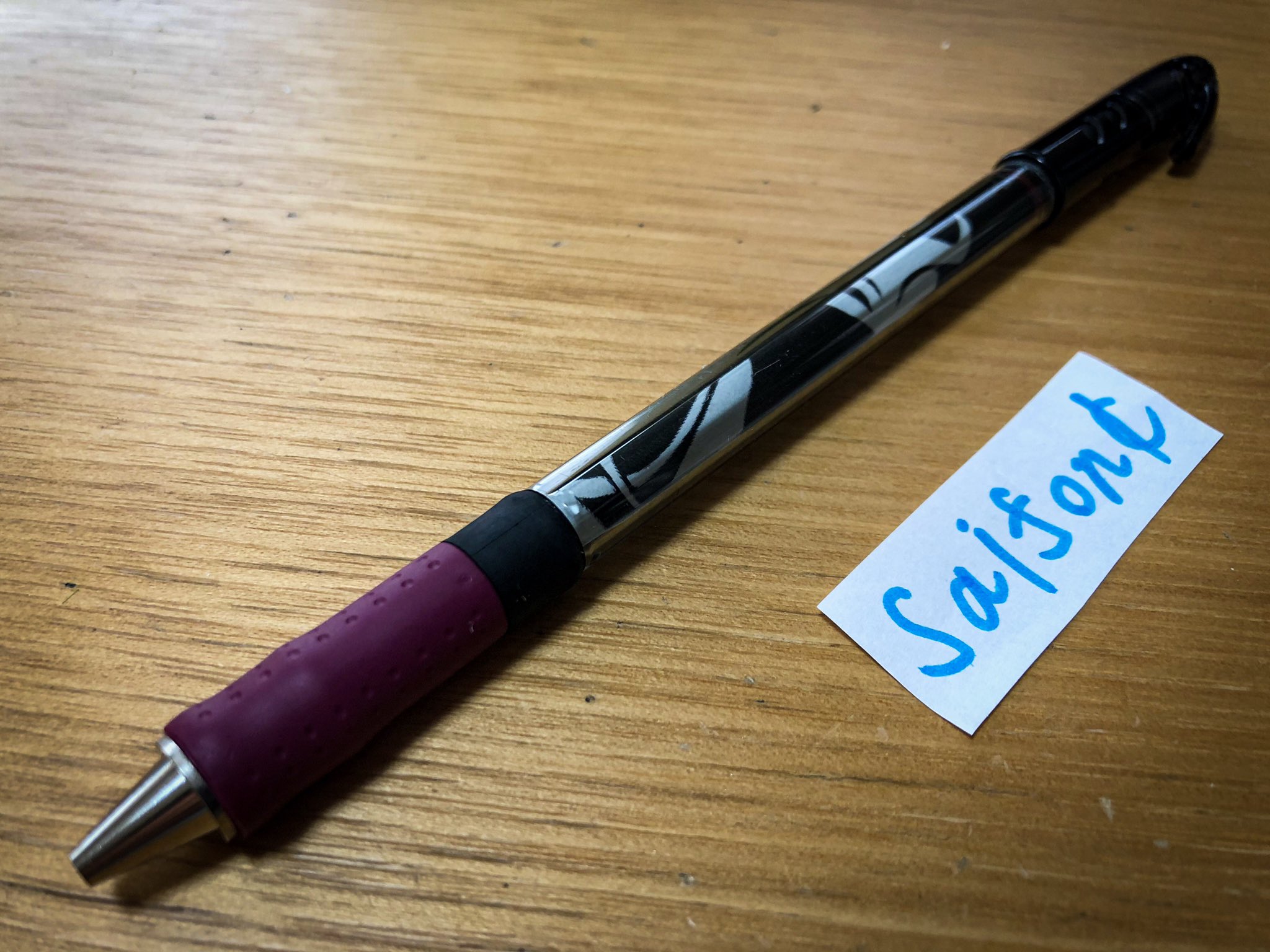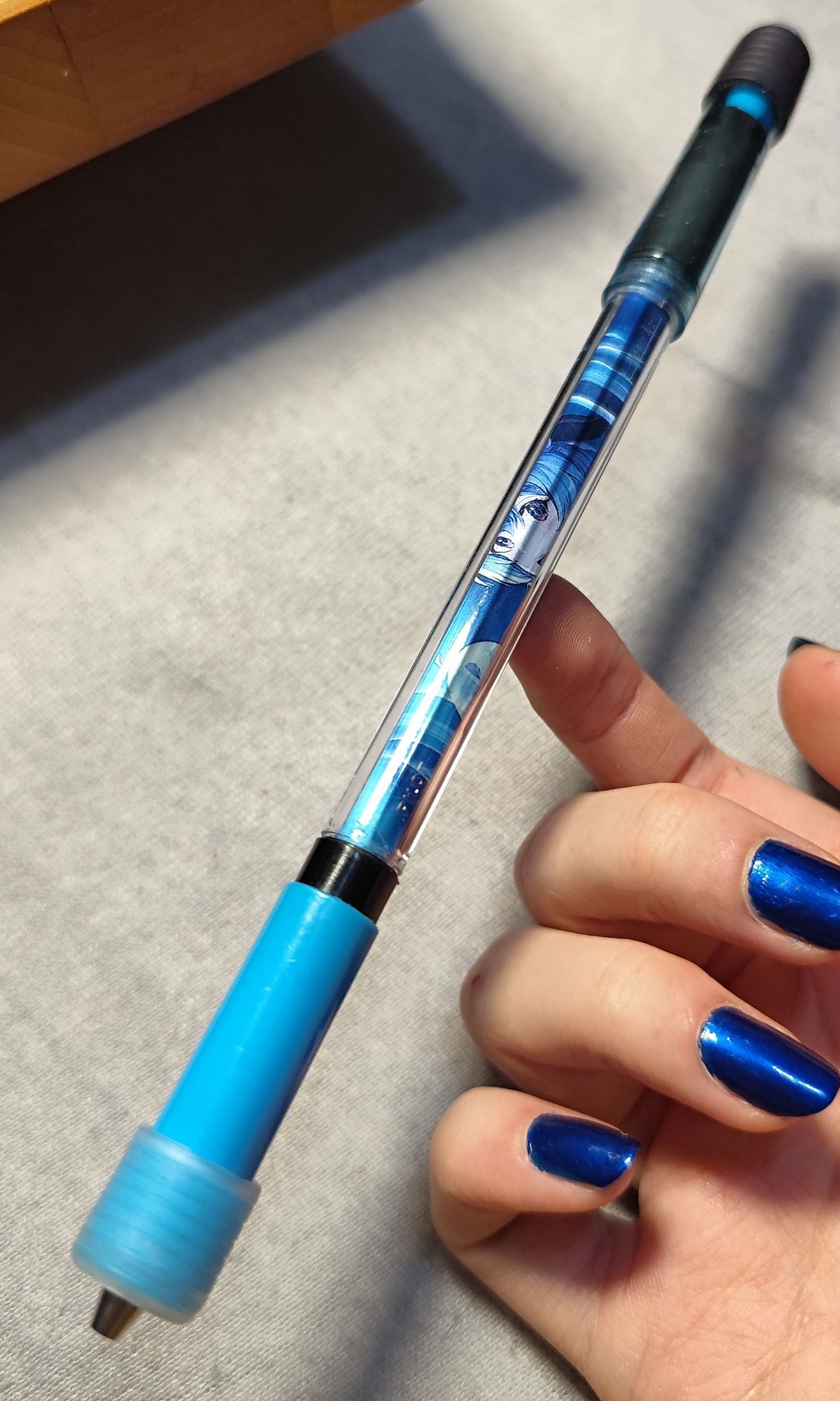 - Put the metal eraser cover of Dr grip onto the remaining exposed section of Ballsign backplug.