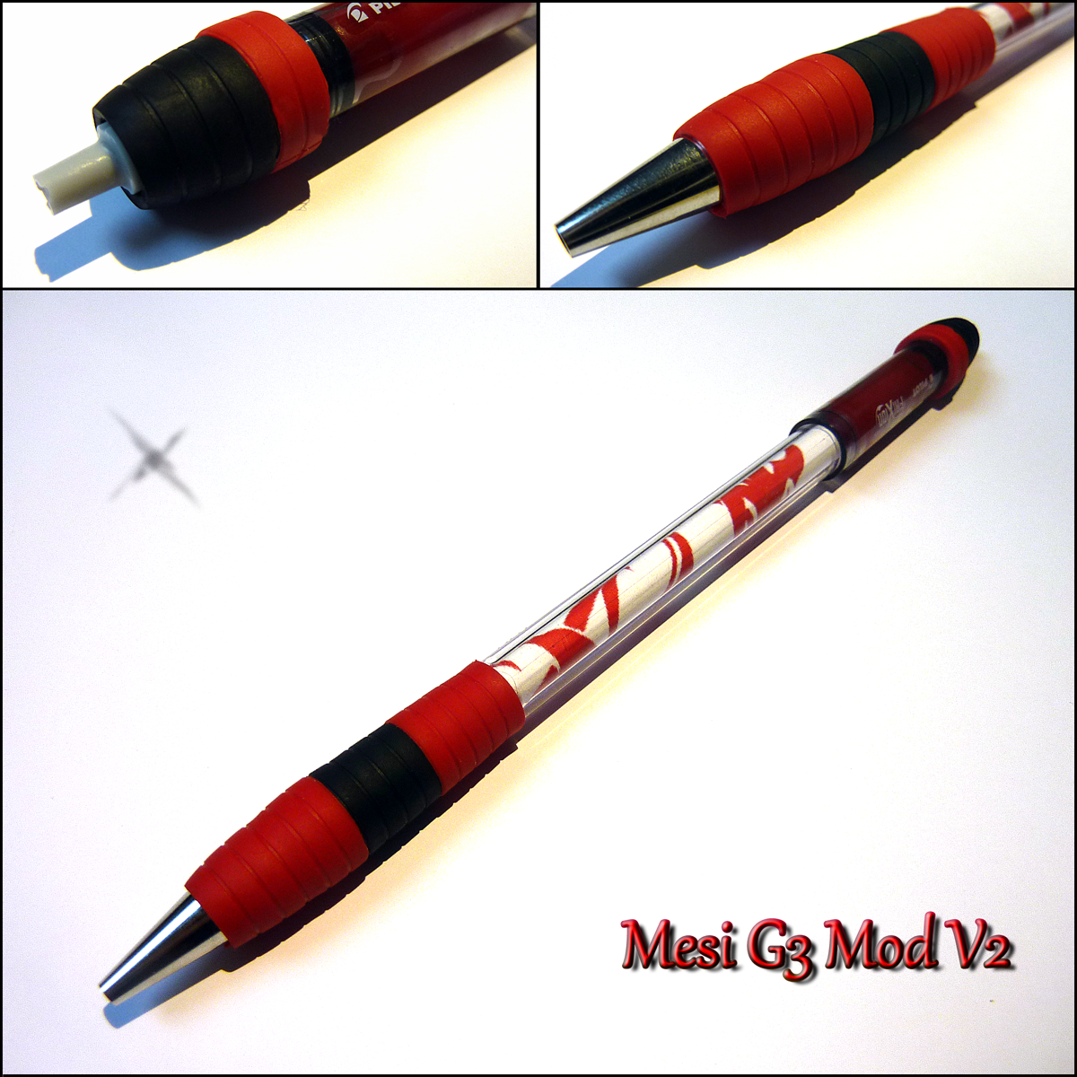 5. Put an insert into the barrel and put the Frixion cap onto the back of the G3 after adding some tape on the G3 barrel. You have finished !
