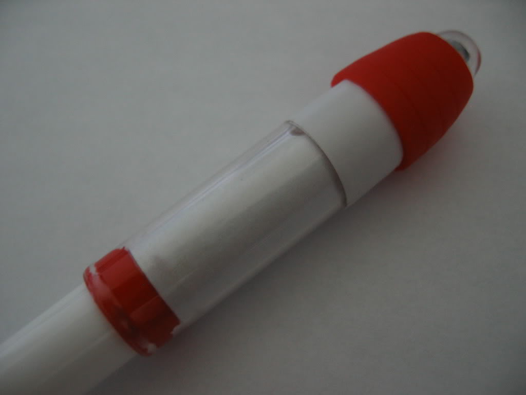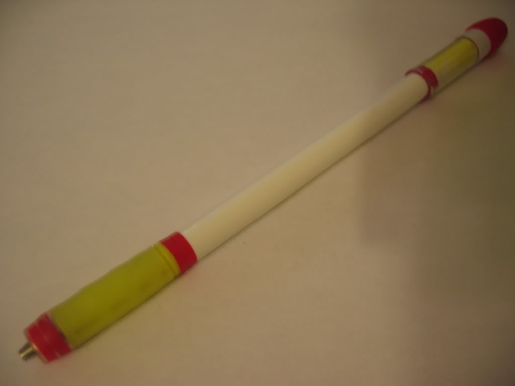 - On the Bic round stick barrel, add in this order: 2 blocks of Anyball grip, a full HGG grip (ring side first), and the base of a signo tip inside the HGG grip.