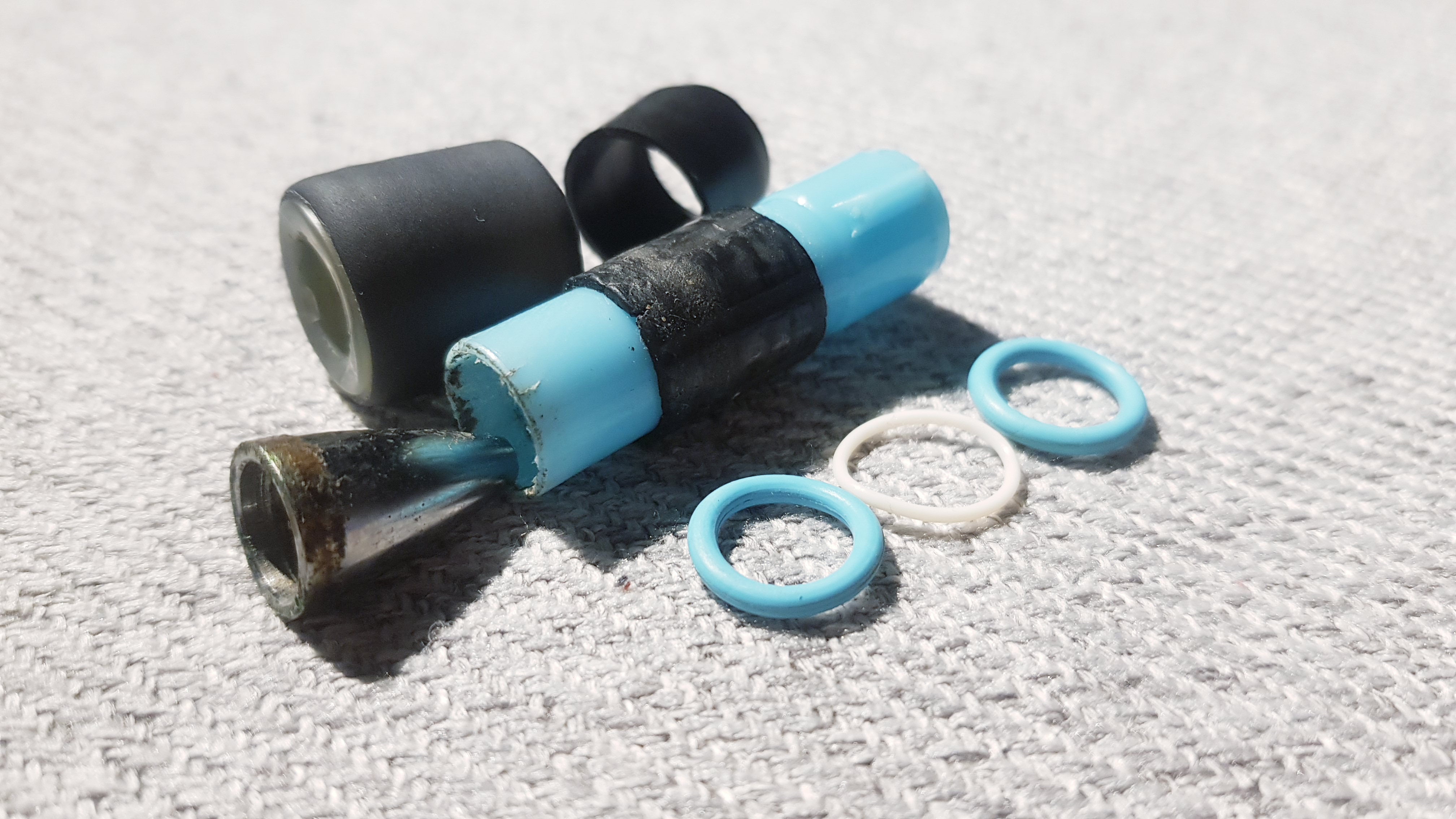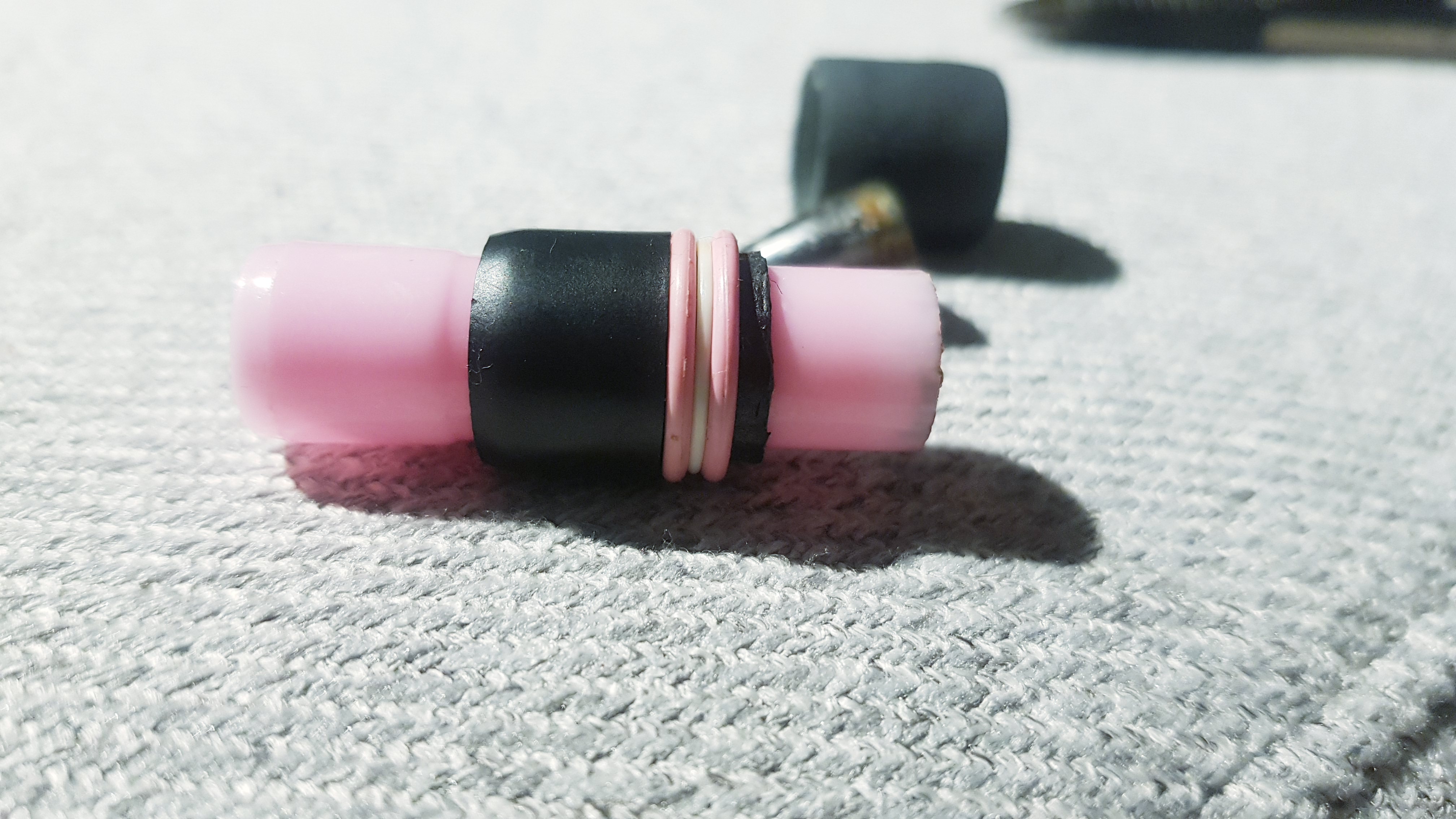 - Over grip it in this order: Small section of inner G-spec body, colored O-ring, Tect ring, and another colored O-ring.