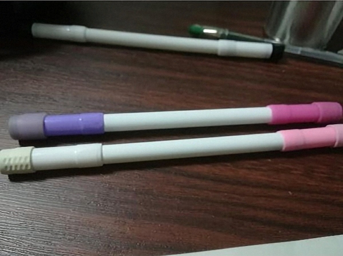 - Put the Signo DX grip on the Color Twin big cap, the grip inside it should prevent the Uni Alpha Gel tip from going out.