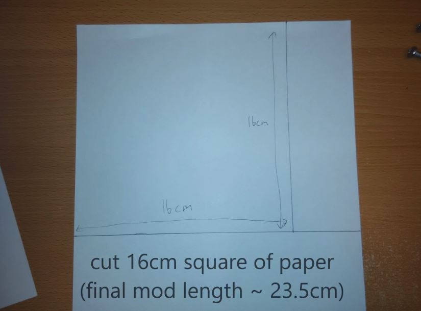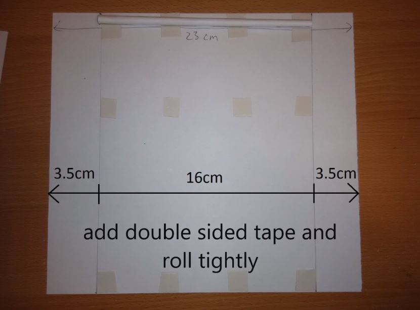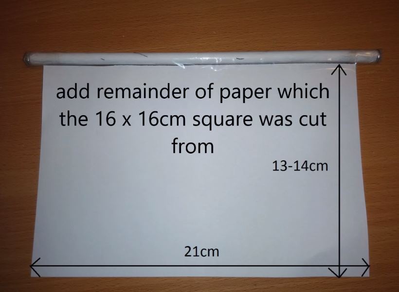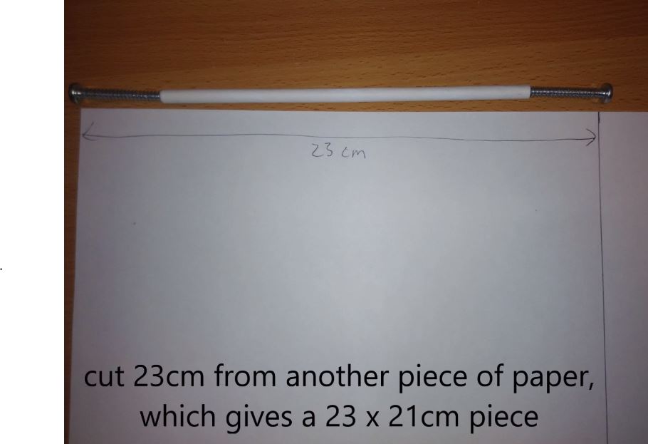 - Cut 23cm from another piece of paper, which gives a 23 x21cm piecce.