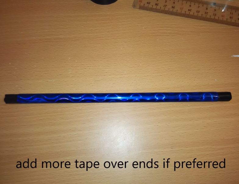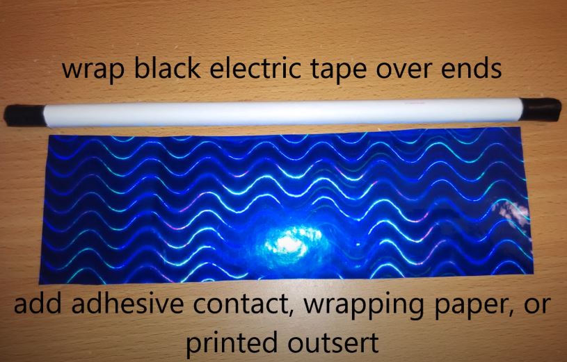 - Wrap black electric tape over ends; add adhesive contact, wrapping paper, or printed outsert.