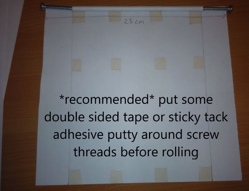 - It is also recommended to put some double sided tape or sticky tack adhesive putty around screw threads before rolling.