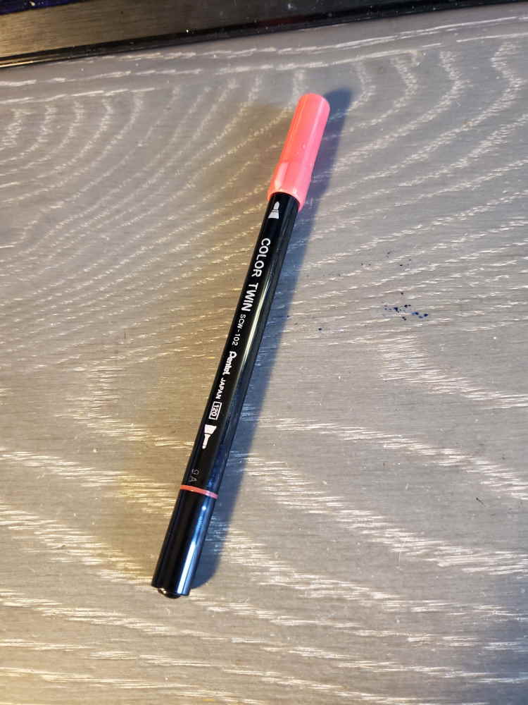 The Pentel Color Twin is a double sided marker made by Pentel. It is most known for its use in the world of Dr. KT mods as a direct substitute for the Keityo made by the same company. It differs in that it has a black barrel and a wide variety of colored large caps.