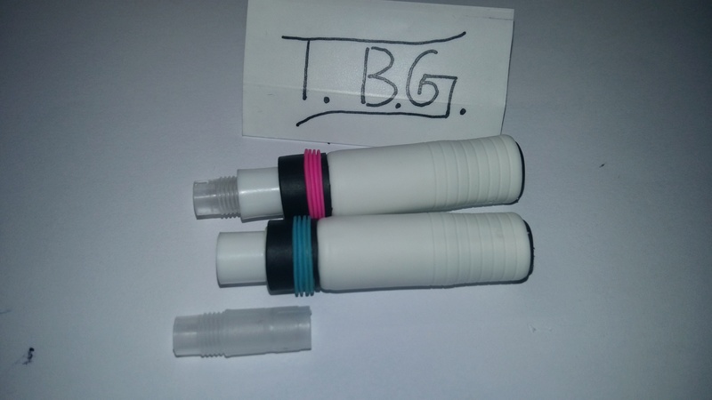 - Flat side first, overgrip the Pilot SuperGrip grip with an enlarged Pilot G2 grip (can be done using pliers). The o-ring of the Pilot SuperGrip grip should remain visible and the visible part of the Uni-Ball Signo Broad grip should be covered