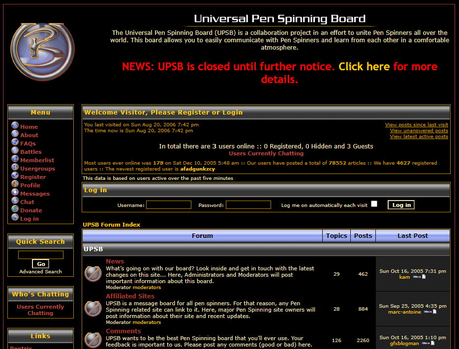 UPSB stands for the Universal Pen Spinning Board. It was the primary international Pen Spinning Community for the English language.