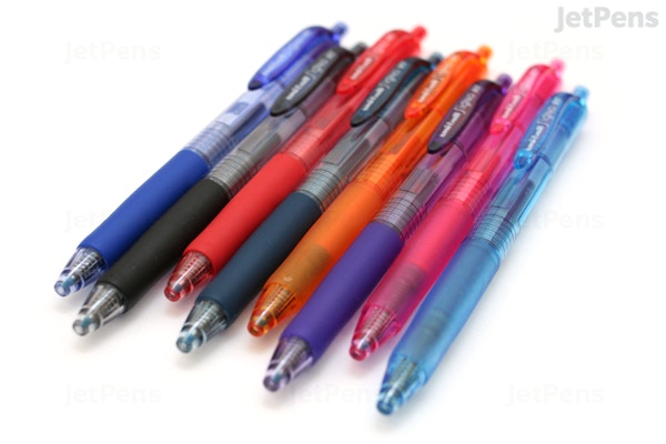 Previously branded as the Signo Knock RT, the Signo RT UMN-103 features a smooth, slightly tapered grip that has historically been used for Grip Cut mods. The retractable pen is similar to the G2, but the barrel and rest of the pen is not usable as a substitute. The grips come in both opaque and tinted translucent colors.