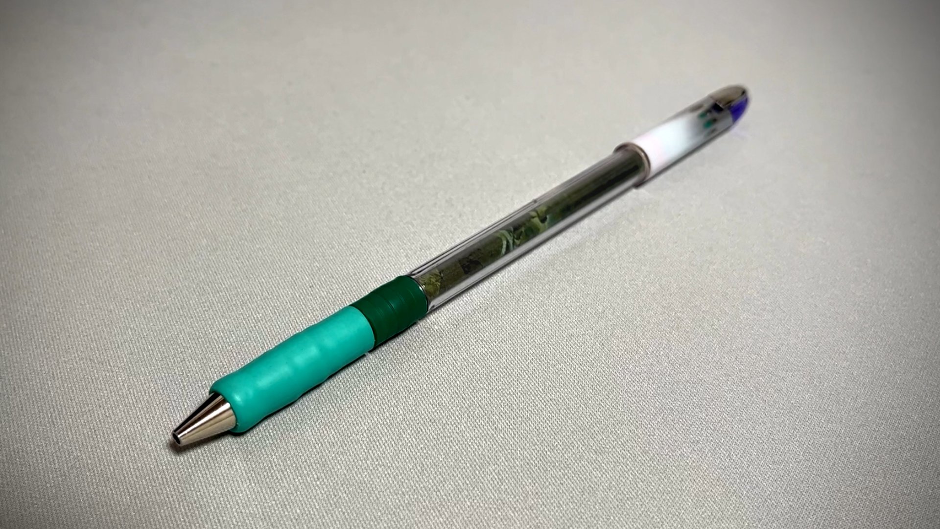 - In this order, add: the G3 grip, the Anyball and the D1-K section onto the Frixion cap.